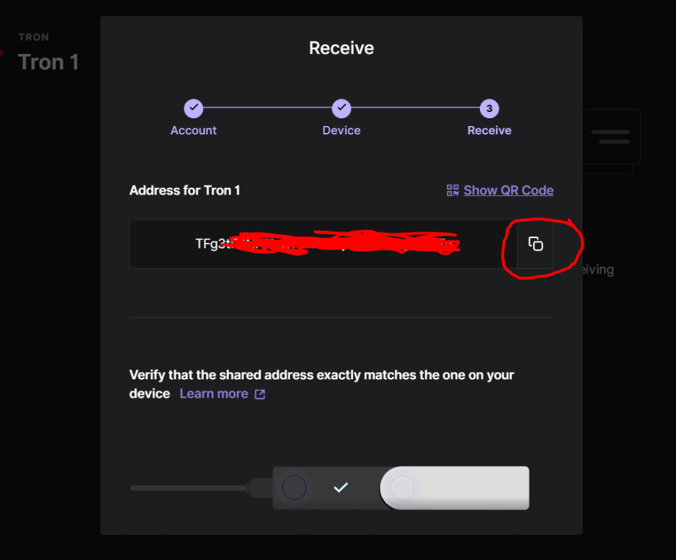 3. נוודא שהכתובת נכונה, ונשתמש בהעתק הדבק או ב-QR בלבד כדי להעביר את הכתובת שלנו לגורם שישלח לנו את המטבעות. מקצוענים משתמשים רק בברקוד או קופי פייסט. לעולם לא נקליד את הכתובת ידנית – זה מקור לטעויות.